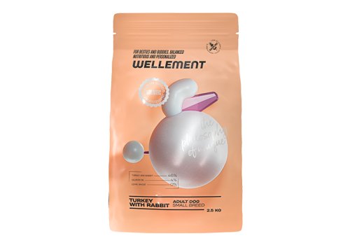 Wellement Adult Small Breed Turkey with Rabbit Сухой корм Велемент для взрослых собак Мелких пород Индейка с кроликом 2,5 кг