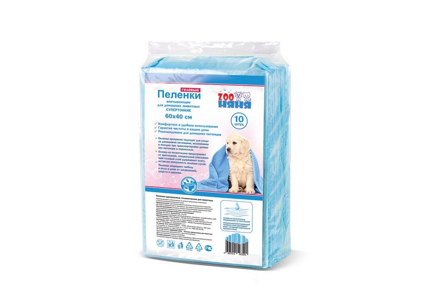 Zoo Няня Пеленки Гелевые тонкие для домашних животных 10 штук 60х40 см