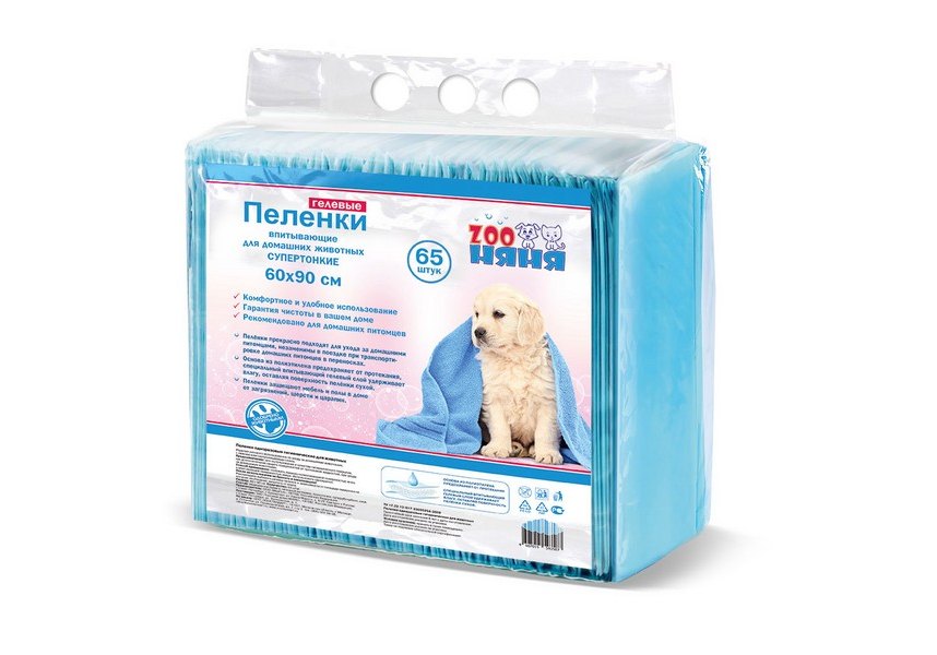 Zoo Няня Пеленки Гелевые тонкие для домашних животных 65 штук 60х90 см