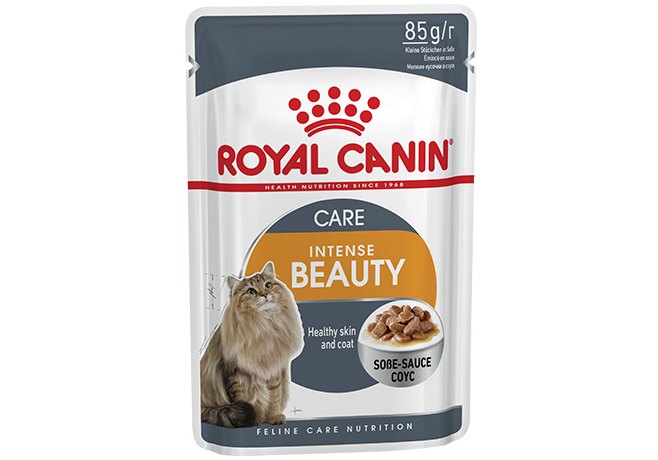 Для продукта ROYAL CANIN® Intense Beauty в соусе характерно высокое содержание жирных кислот омега-3 и омега-6, способствующих блеску шерсти и здоровью кожи.