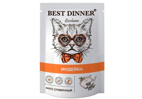 Best Dinner Exclusive Паучи Бест Диннер для Котят и кошек Мусс сливочный Индейка (цена за упаковку) 85г х 24шт