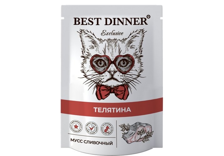 Best Dinner Exclusive Паучи Бест Диннер для Котят и кошек Мусс сливочный Телятина (цена за упаковку) 85г х 24шт
