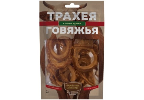 Деревенские лакомства Классические рецепты Трахея Говяжья с мясом Курицы для собак 50 г