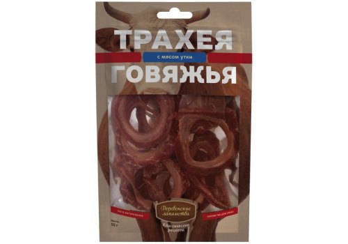 Деревенские лакомства Классические рецепты Трахея Говяжья с мясом Утки для собак 50 г
