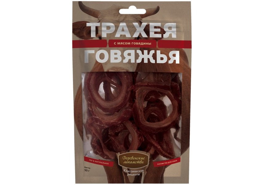 Деревенские лакомства Классические рецепты Трахея Говяжья с мясом Говядины для собак 50 г