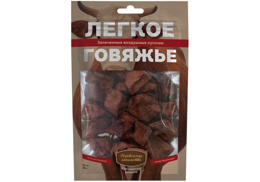 Деревенские лакомства Классические рецепты Легкое Говяжье для собак 50 г