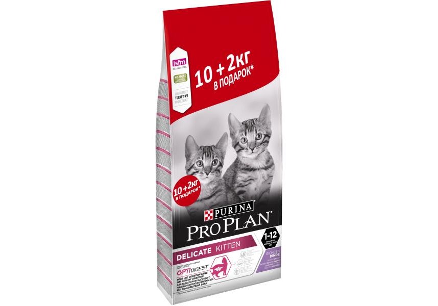 PRO PLAN DELICATE Сухой корм ПРО ПЛАН для котят при чувствительном пищеварении с индейкой 10 кг + 2 кг