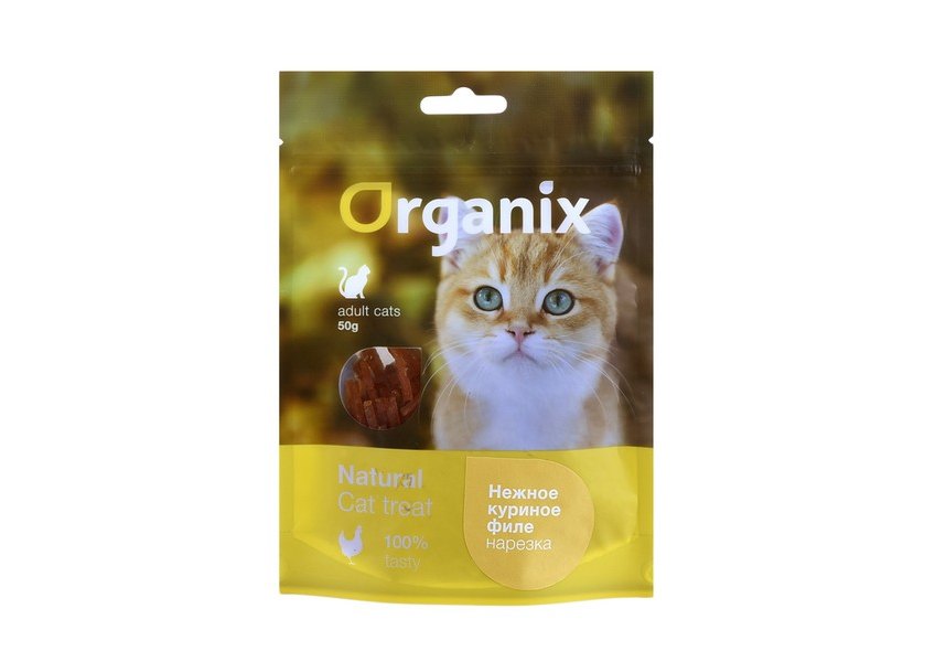 Organix Soft chicken fillet shreds Лакомство Органикс для кошек Нежная нарезка Куриного филе 100% мясо 50 г