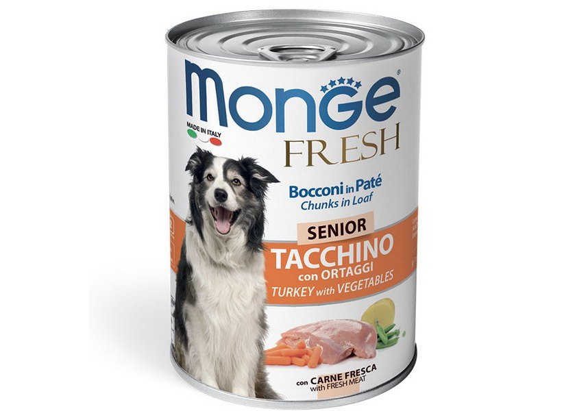 Monge Dog Fresh Senior Chunks in Loaf Turkey with Vegetables Влажный корм Консервы Монж для Пожилых собак Мясной рулет с Индейкой и овощами (цена за упаковку) 400г х 24шт
