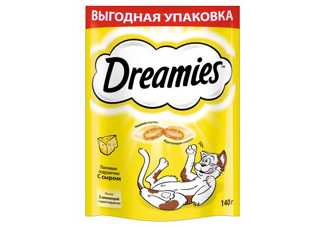 Dreamies ® Лакомые подушечки для кошек- это добавка к ежедневному рациону. Давайте Вашему любимцу Dreamies®, когда хотите побаловать его.