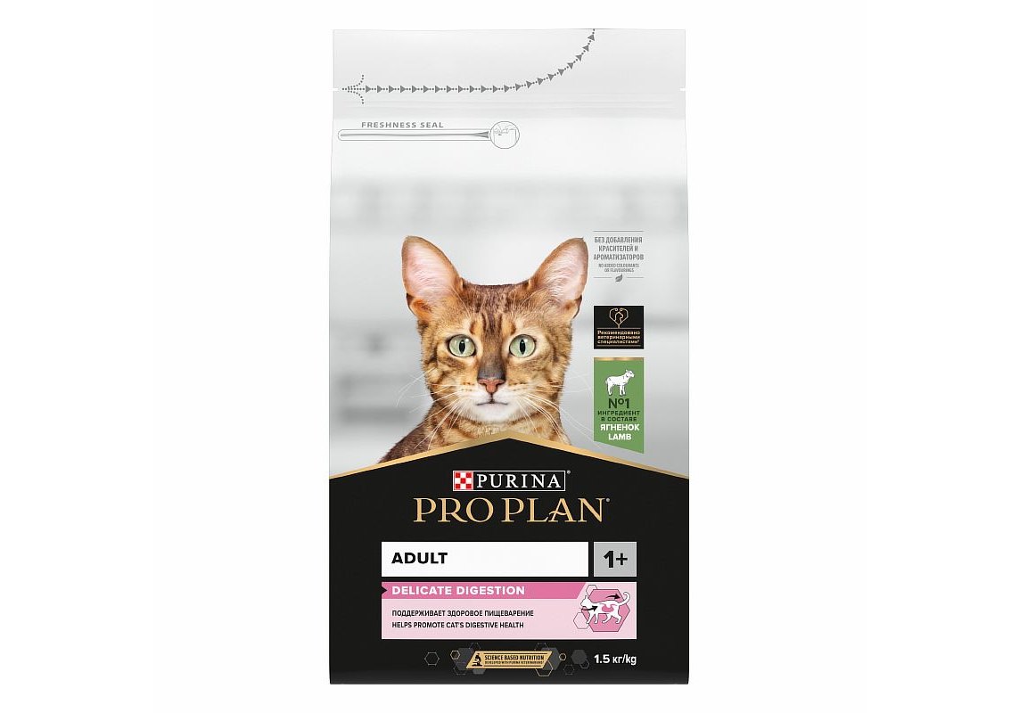 Команда квалифицированных ветеринарных специалистов и диетологов разработала для кошек сухой корм с ягненком PRO PLAN® DELICATE DIGESTION. Этот сбалансированный полнорационный корм обладает легкоусвояемой формулой , поэтому подходит для повседневного кормления питомцев с проблемами пищеварения.