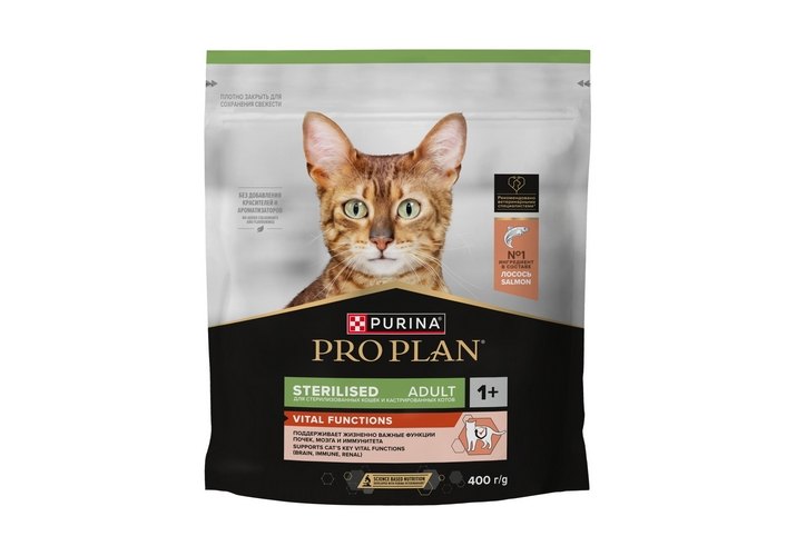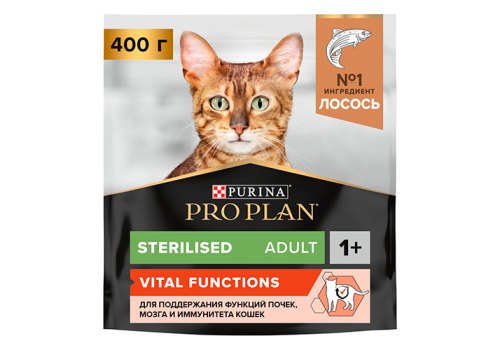 PRO PLAN VITAL FUNCTIONS STERILISED ADULT Сухой корм ПРО ПЛАН для Взрослых Стерилизованных кошек для поддержания здоровья почек после стерилизации, для мозга и иммунитета с высоким содержанием Лосося 400 г