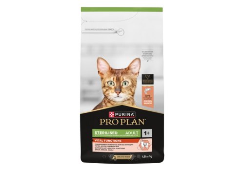 PRO PLAN STERILISED Сухой корм ПРО ПЛАН для взрослых кошек для поддержания органов чувств у стерилизованных с лососем 1,5 кг