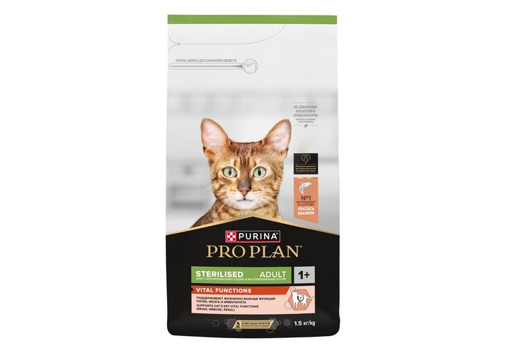 Команда квалифицированных ветеринарных специалистов и диетологов разработала сухой корм для стерилизованных кошек PRO PLAN® Sterilised VITAL FUNCTIONS.