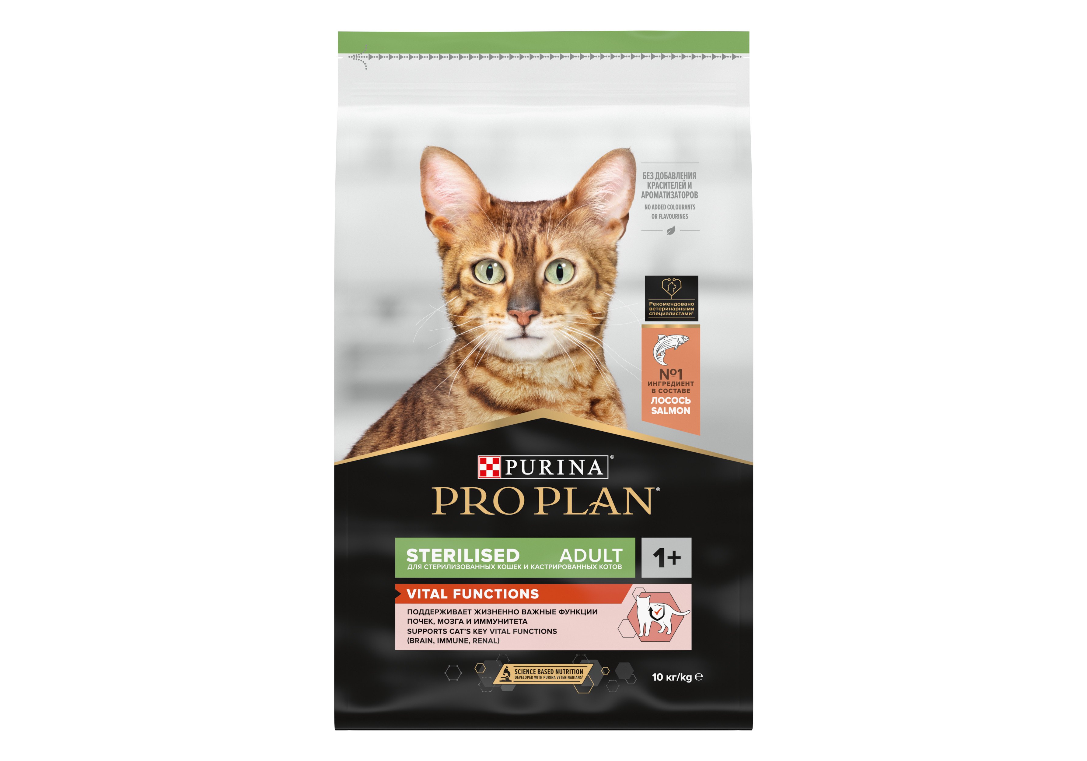Команда квалифицированных ветеринарных специалистов и диетологов разработала сухой корм для стерилизованных кошек PRO PLAN® Sterilised VITAL FUNCTIONS. Этот сбалансированный полнорационный сухой корм легко усваивается и содержит специальные компоненты, которые помогают поддержать работу органов чувств.