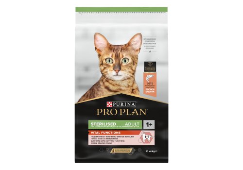PRO PLAN STERILISED Сухой корм ПРО ПЛАН для взрослых кошек для поддержания органов чувств у стерилизованных с лососем 10 кг