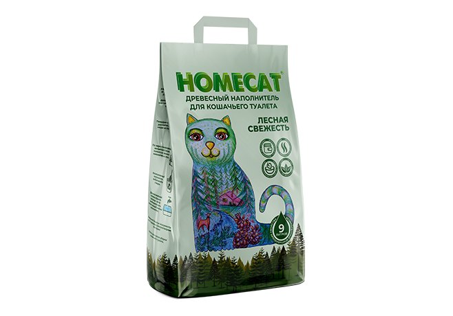 Homecat Лесная свежесть Древесный наполнитель Хоумкэт для кошачьего туалета Мелкие гранулы 9 л