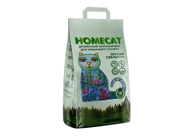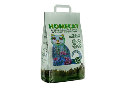 Homecat Лесная свежесть Древесный наполнитель Хоумкэт для кошачьего туалета Мелкие гранулы 16 л
