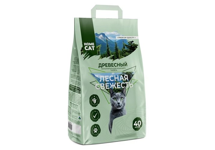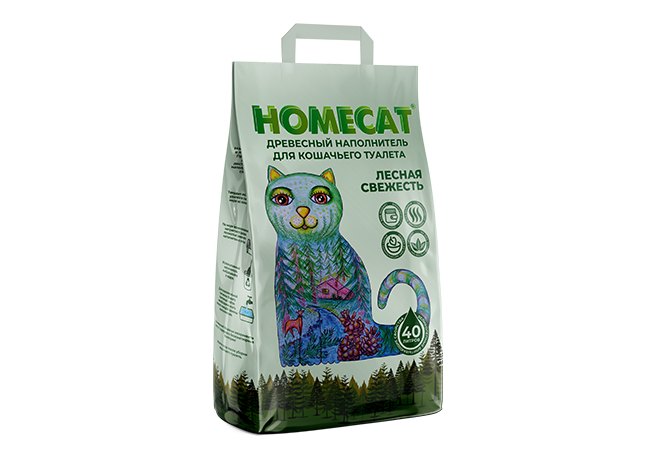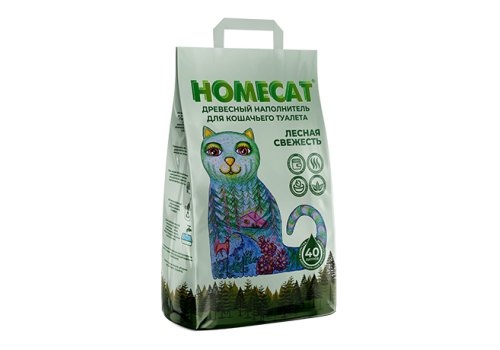 Homecat Лесная свежесть Древесный наполнитель Хоумкэт для кошачьего туалета Мелкие гранулы 40 л