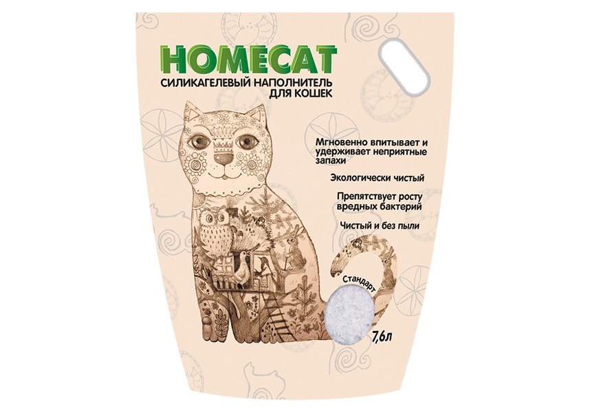 Homecat Силикагелевый наполнитель Хоумкэт для кошачьего туалета Стандарт без запаха 7,6 л