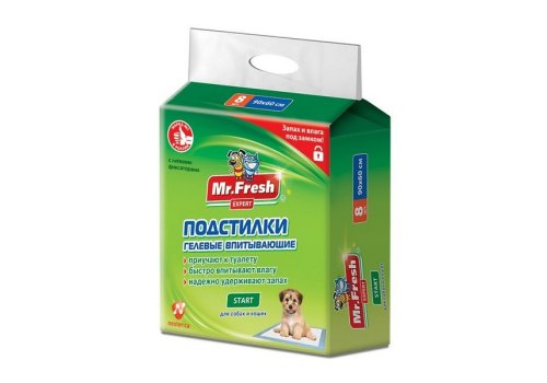 Mr.Fresh Expert Start Подстилки Мистер Фреш Ежедневные для Приучения к месту Гелевые с Липкими фиксаторами 90х60см 8шт