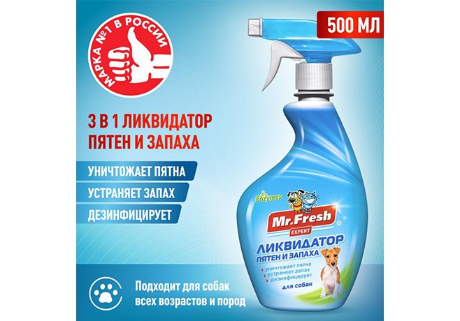 Mr.Fresh Expert 3в1 Спрей Мистер Фреш для собак Ликвидатор Пятен и Запаха 500 мл
