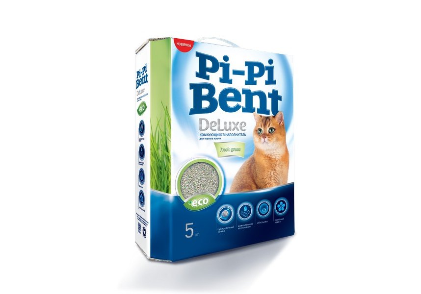 Pi-Pi Bent DeLuxe Fresh Grass Наполнитель ПиПиБент для кошачьего туалета Комкующийся Свежая трава 5 кг