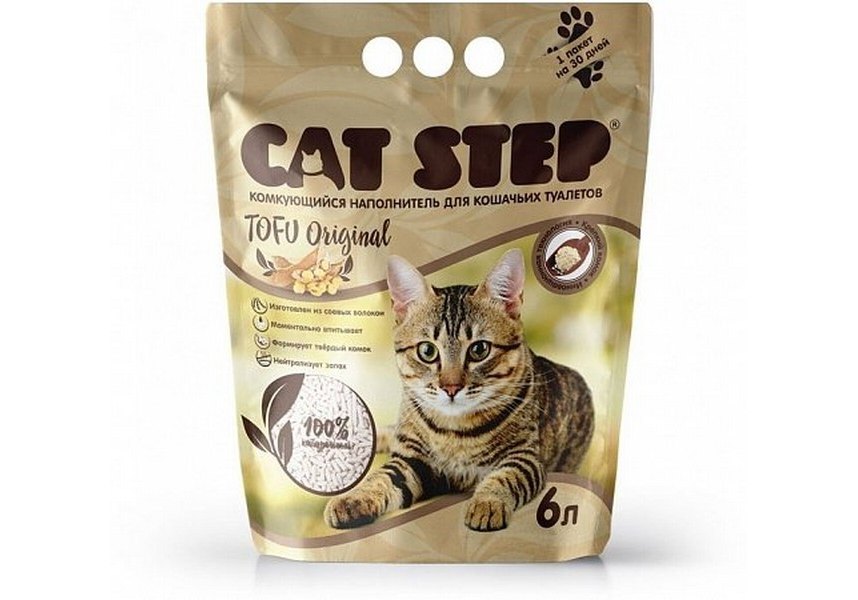 Cat Step Tofu Original Комкующийся растительный наполнитель Кэт Степ для кошачьего туалета 6 л (2,8 кг)