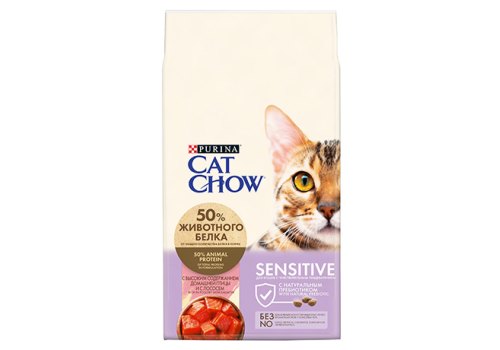 - Сухой корм для кошек Cat Chow Sensitive — полнорационный, содержит все необходимые для здоровья микронутриенты