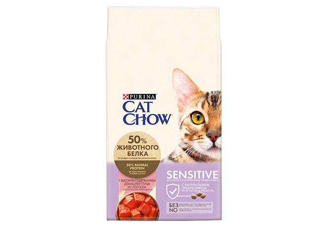 Эксперты Purina, разрабатывая корм для взрослых питомцев, создали Cat Chow Sensitive — специальный рацион для кошек с чувствительным пищеварением.