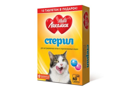 Multi Лакомки Витаминное лакомство Мульти Лакомки для Стерилизованных кошек и Кастрированных котов Стерил 70 таб
