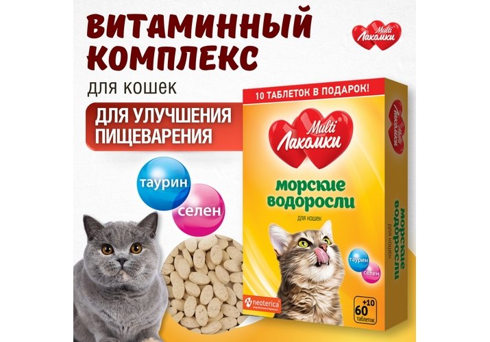 Multi Лакомки Витаминное лакомство Мульти Лакомки для кошек Морские водоросли 70 таб