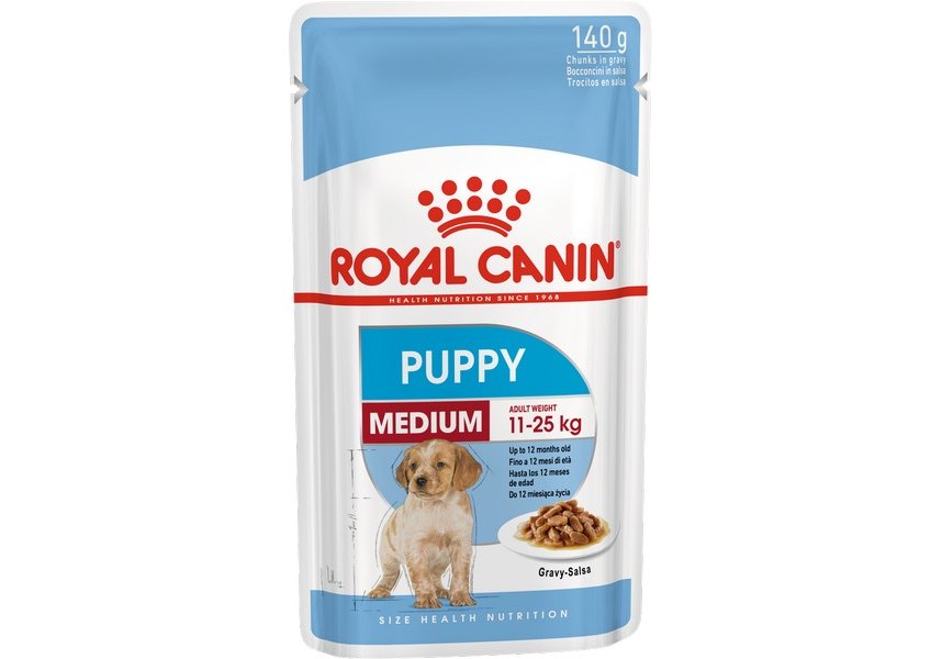 Royal Canin Medium Puppy Влажный корм (Паучи) Роял Канин Медиум Паппи для Щенков Средних пород в возрасте от 2 до 12 месяцев (Цена за упаковку) 140г х 3+1шт