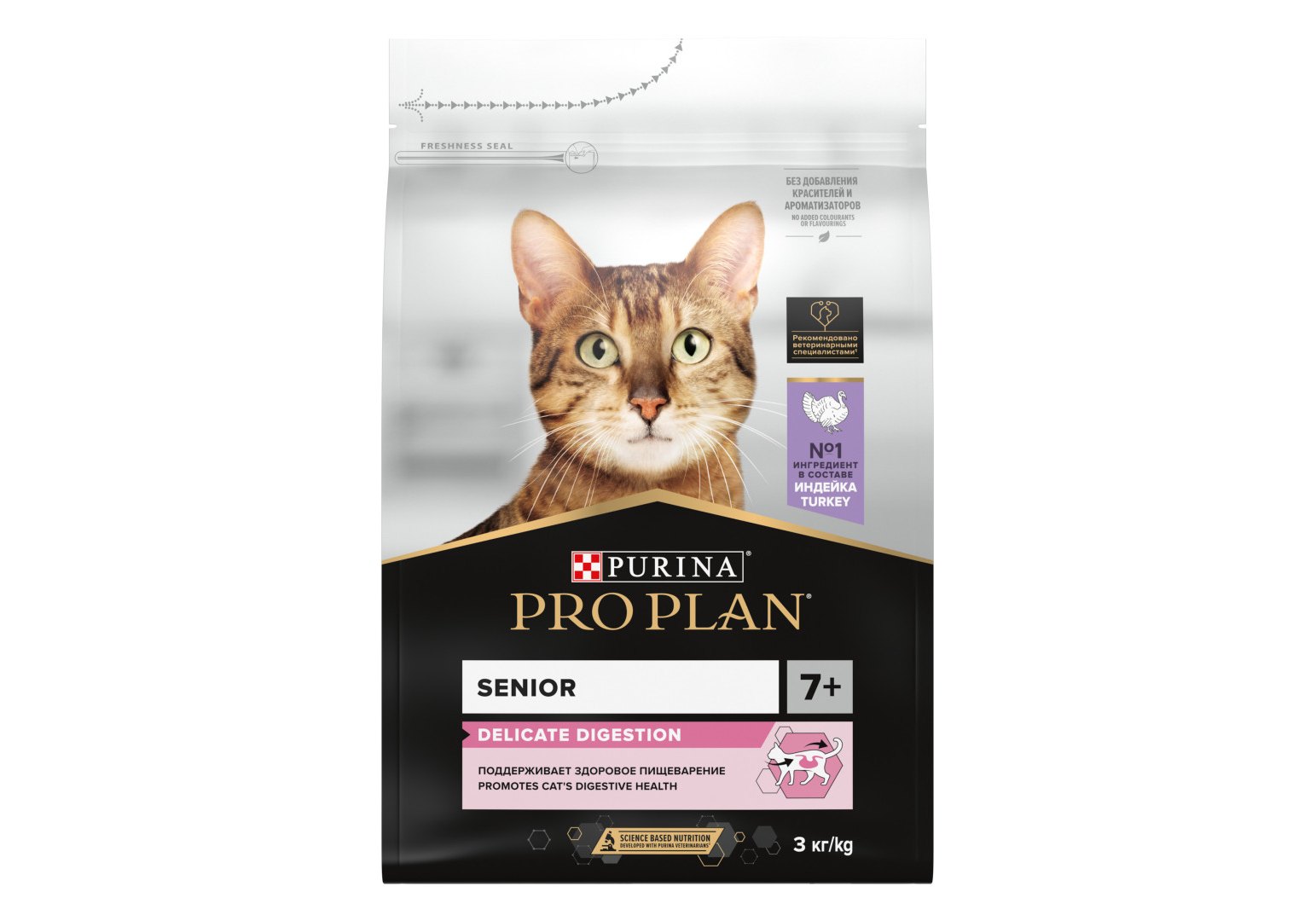 Создавая сухой корм для кошек старше семи лет, эксперты PRO PLAN позаботились об особых потребностях пожилых питомцев с чувствительным пищеварением, добавив специальный комплекс микронутриентов для продления жизни