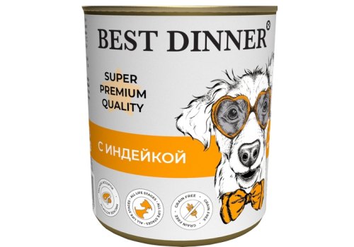 Best Dinner Super Premium Консервы Бест Диннер для собак Мясные деликатесы с Индейкой (цена за упаковку) 340г х 6шт
