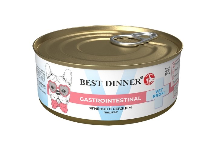 Best Dinner Exclusive Vet Profi Gastro Intestinal Консервы Бест Диннер для собак Ягненок с сердцем (цена за упаковку) 100г х 12шт