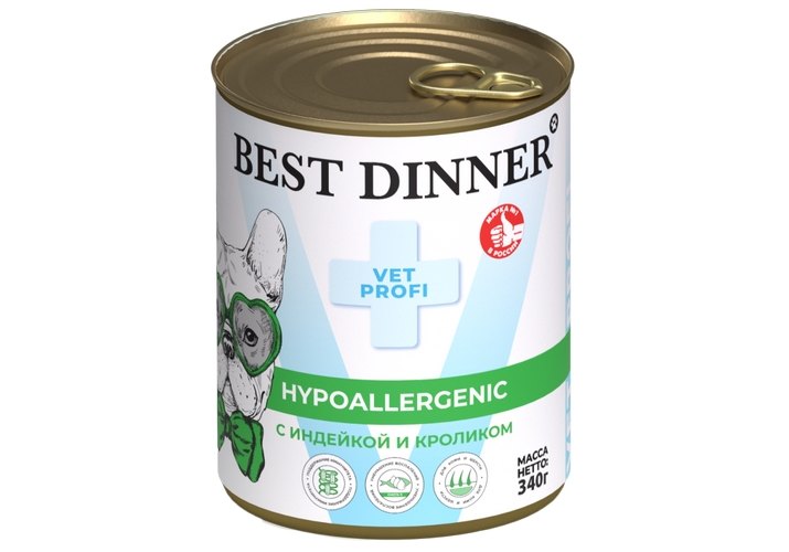 Best Dinner Exclusive Vet Profi Hypoallergenic Консервы Бест Диннер для собак с Индейкой и кроликом (цена за упаковку) 340г х 6шт