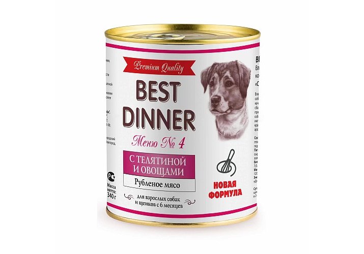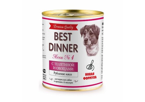 Best Dinner Premium Консервы Бест Диннер для собак Меню №4 с Телятиной и овощами (цена за упаковку) 340г х 12шт