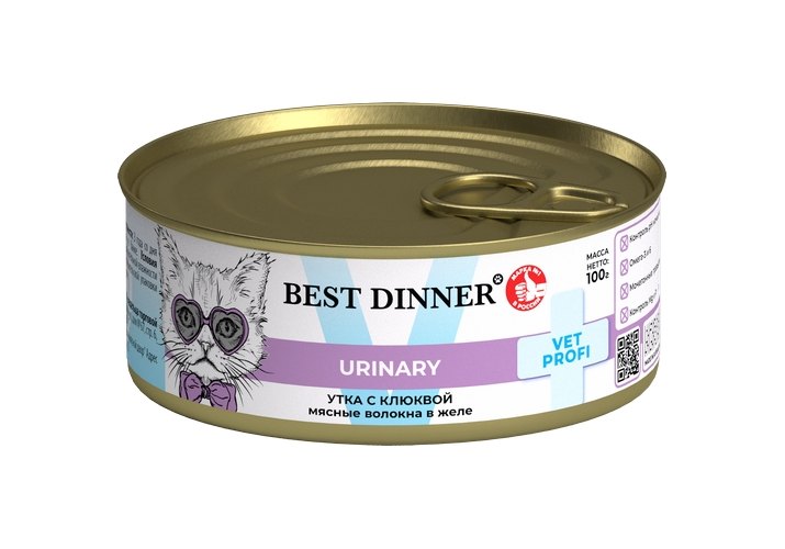 Best Dinner Exclusive Vet Profi Urinary Консервы Бест Диннер для кошек Утка с клюквой (цена за упаковку) 100г х 12шт