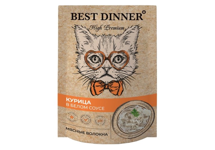 Best Dinner High Premium Паучи Бест Диннер для кошек Курица в белом соусе (цена за упаковку) 85г х 24шт