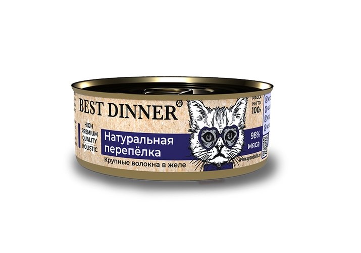 Best Dinner High Premium Консервы Бест Диннер для кошек Натуральная Перепелка (цена за упаковку) 100г х 12шт