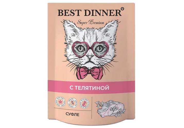 Best Dinner Super Premium Паучи Бест Диннер для кошек и Котят с 6 месяцев Суфле с Телятиной (цена за упаковку) 85г х 24шт