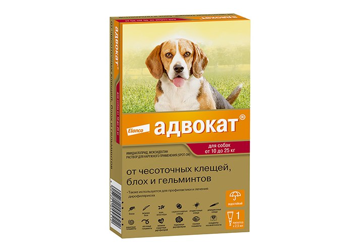 Elanco Адвокат 250 Капли на холку от Чесоточных Клещей, Блох и Гельминтов для собак весом 10-25 кг 1шт х 2,5мл