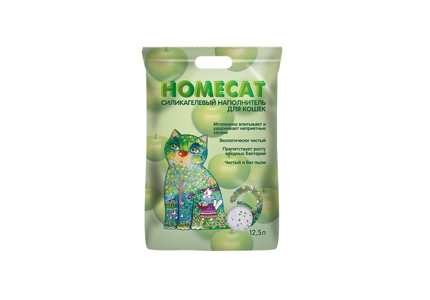 Homecat Силикагелевый наполнитель Хоумкэт для кошачьего туалета аромат Яблоко 12,5 л