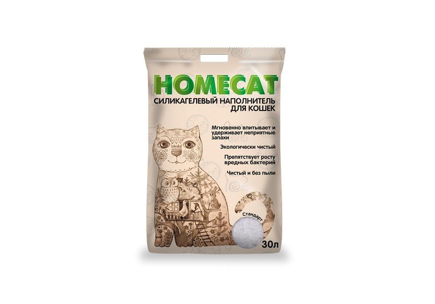 Homecat Силикагелевый наполнитель Хоумкэт для кошачьего туалета Стандарт без запаха 30 л