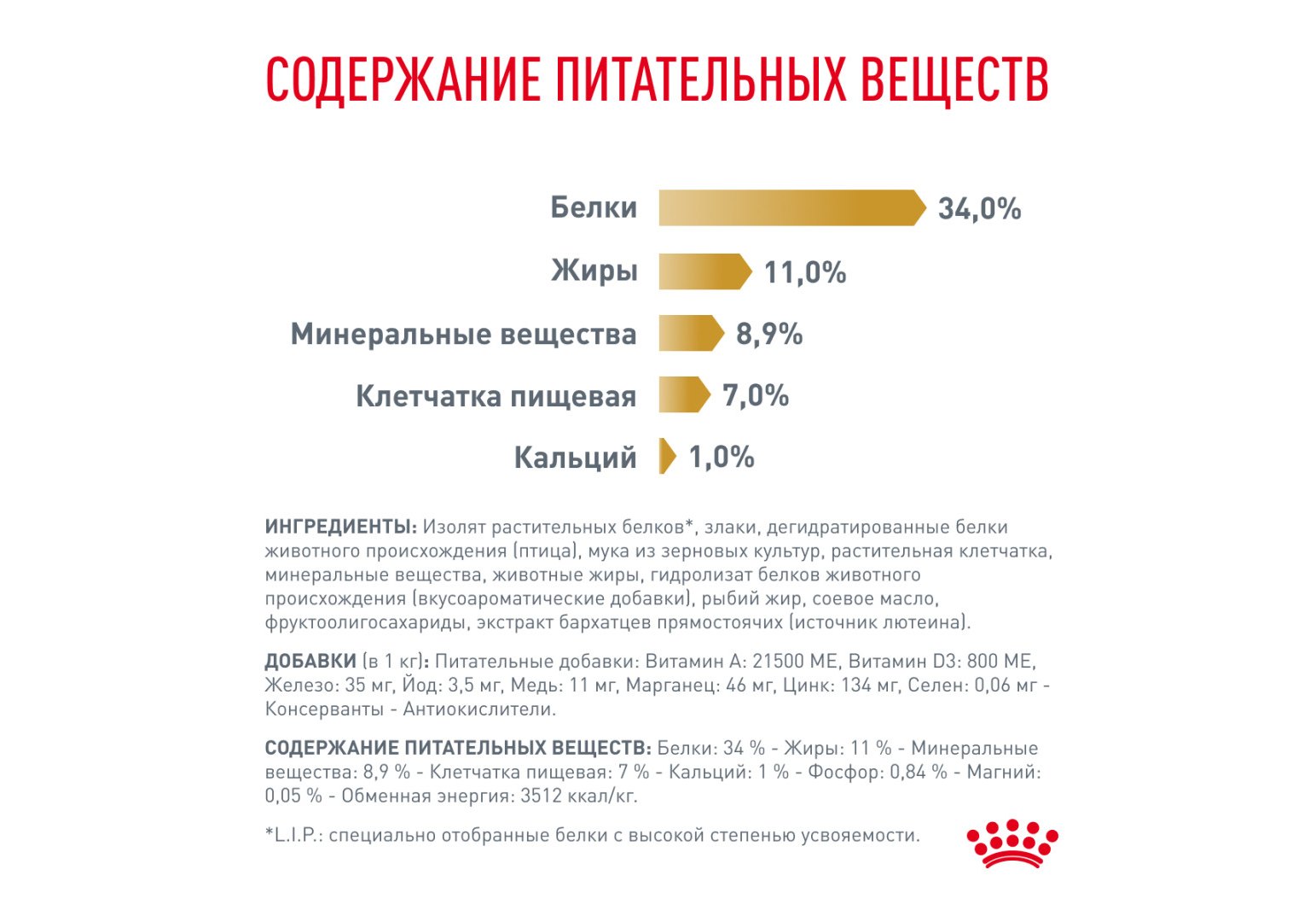 *L.I.P.: специально отобранные белки с высокой степенью усвояемости.