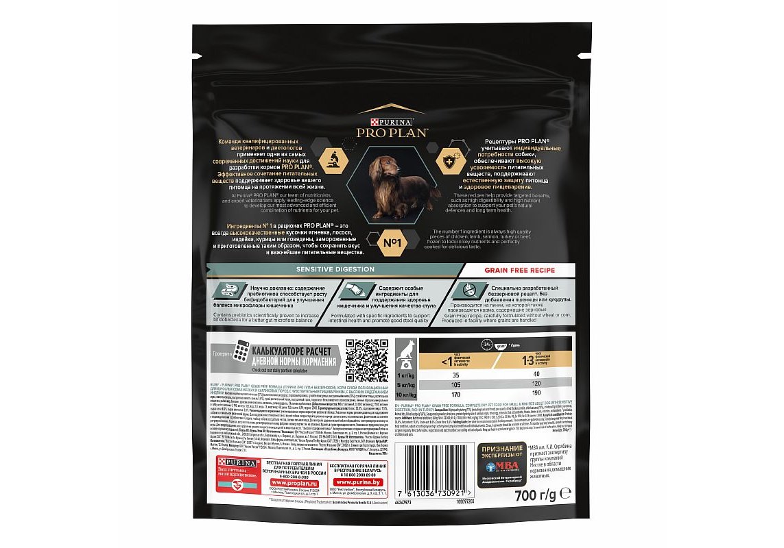 Изучая потребности собак на протяжении многих лет, команда квалифицированных ветеринарных специалистов и диетологов PURINA разработала сухой корм PRO PLAN® Sensitive digestion.Grain free ежедневный беззерновой рацион для взрослых собак мелких и карликовых пород с высоким содержанием ягненка. Этот полнорационный корм полностью сбалансирован по составу и помогает поддержать здоровье кишечника.
