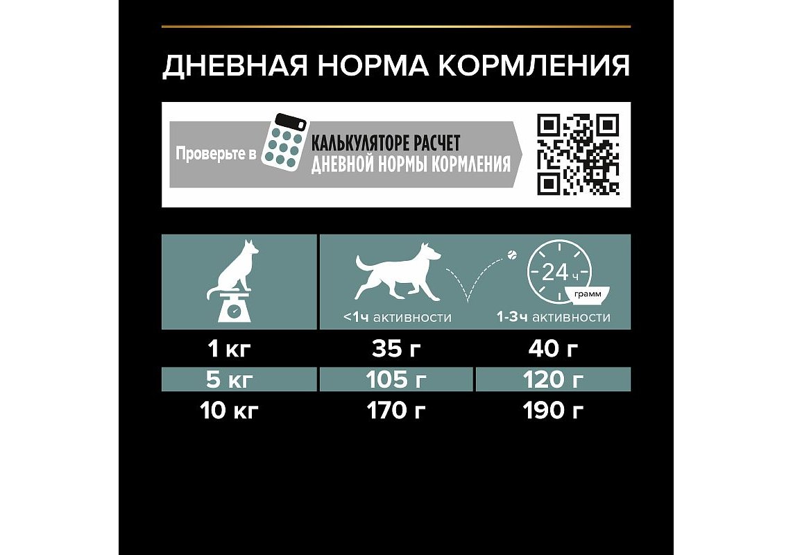 Индивидуальную норму кормления собаки с учетом его возраста, размера и индивидуальных потребностей вы можете рассчитать в специальном калькуляторе. Для этого сканируйте QR-код на задней стороне упаковки. Если вы впервые переходите на корм PRO PLAN®, воспользуйтесь рекомендациями по переводу питомца на корм PRO PLAN в карточке товара.