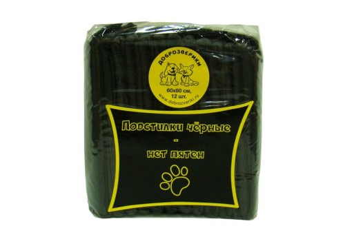 Доброзверики Подстилки впитывающие для животных с Суперабсорбентом Черные 60х60см 12шт