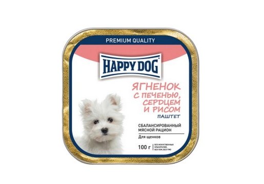Happy Dog Паштет Хэппи Дог для Щенков Мелких пород Ягнёнок с печенью, сердцем и рисом (цена за упаковку) 100г х 15шт